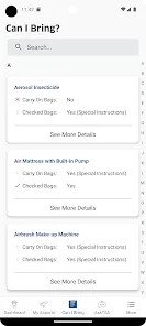 + Quickly search which items you can bring with you through the checkpoint onto the airplane.